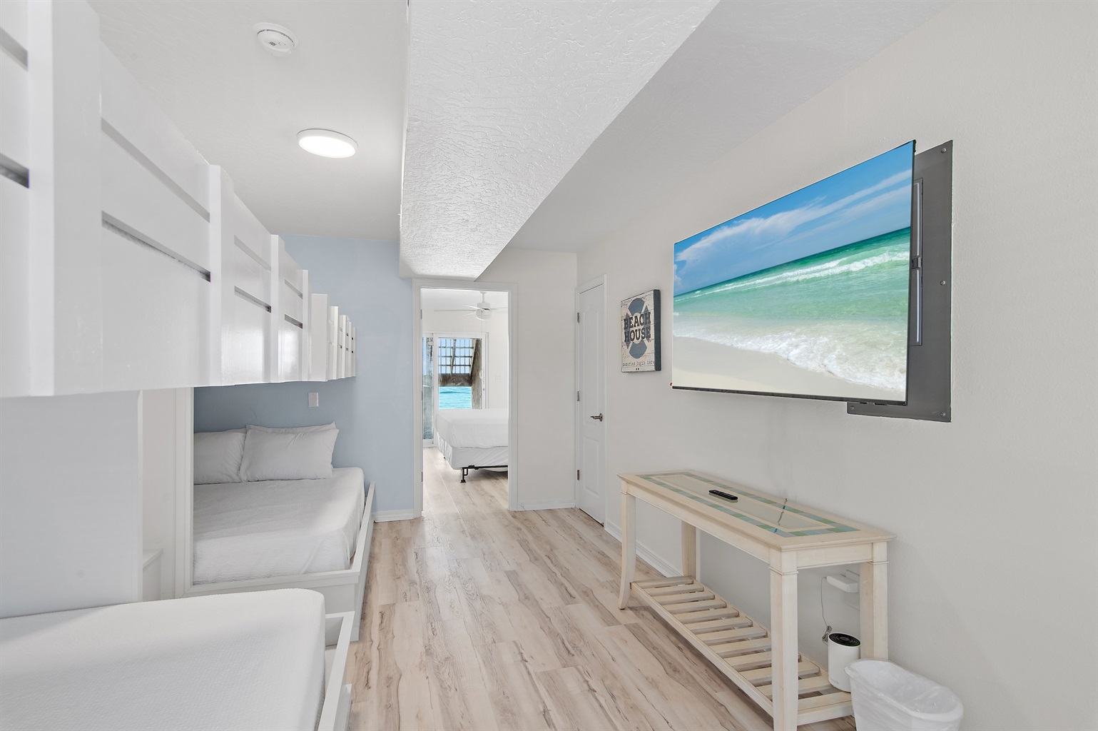 First Floor (Entry Level): One King Suite with an en-suite bathroom that is shared with the adjacent bunk room. Second Floor: No bedrooms on this level—this floor is dedicated to the kitchen, dining, and entertaining areas. It has one half bath. Third Floor: Two additional private King Suites. The first is located at the front of the home (street side), and the second is the Primary Suite, both offering private en-suite bathrooms. |